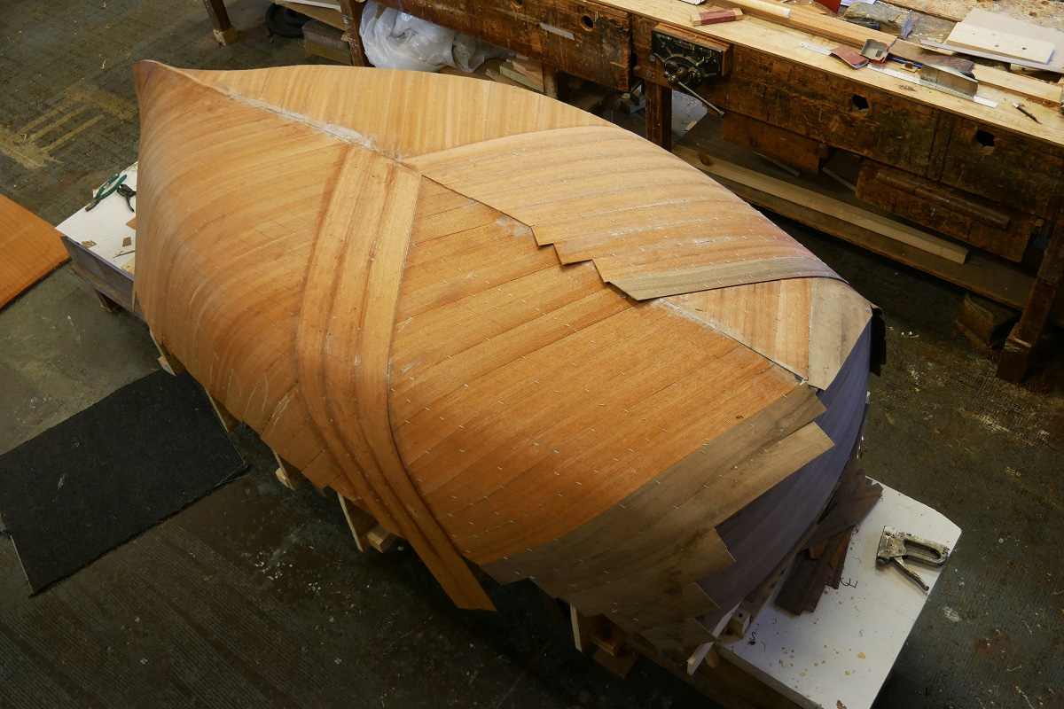 I learned how to build seven different types of wood construction and reinforced fibre builds: carvel traditional, carvel glued, clinker traditional, clinker glued, cold-moulded, stitch and glue, stripped-planking, polyester, epoxy-carbon. We build in traditional and in modern techniques and did the whole process including lofting (full size drawing), producing templates, structure set up, building, steam-bending, laminated building, outfitting, yacht joinery, spar and oar construction, engine beds and stern tubes, finishing coatings and compounds, rigging, splicing, sailmaking, and marine systems and engineering.