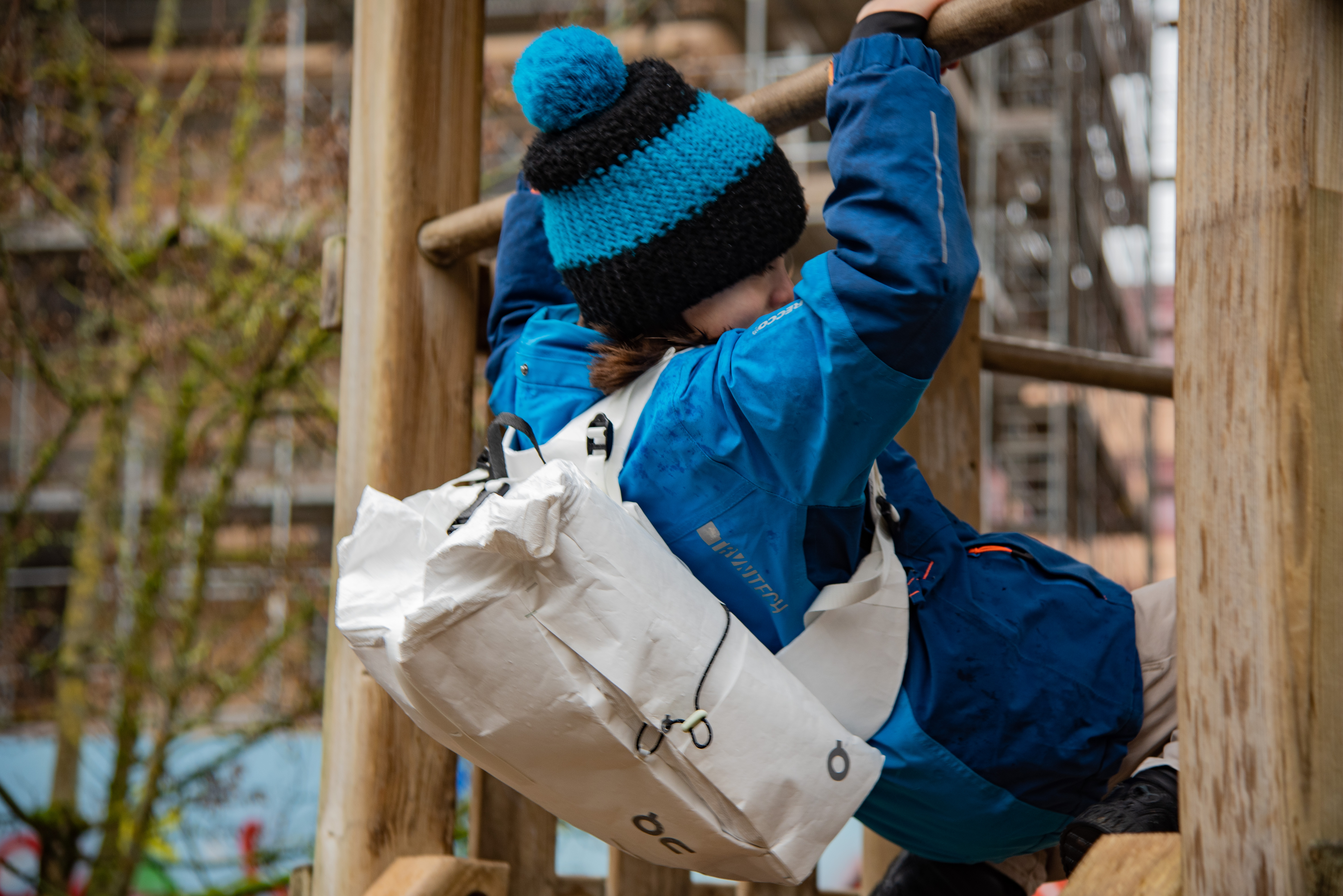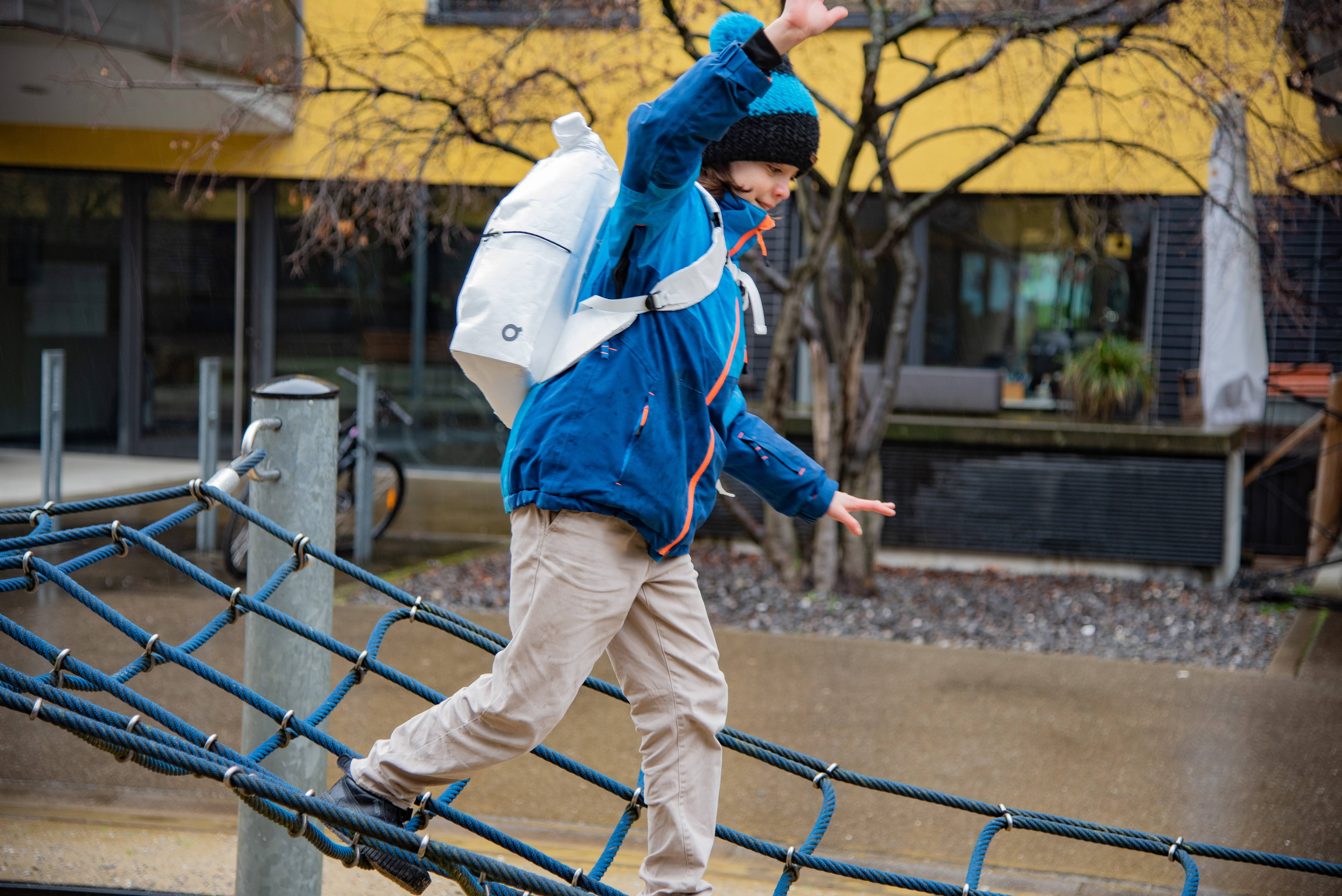 With an innovative shoulder strap, that fits at the hip smoothly to the body of the kids, the weight is distributed well. From the beginning on my goal was to understand how the children act and to design a school bag that supports the children in being who they are. No child fastens the waist belt, loose sheets become crumpled and they don't like to use a light at the bicycle in the winter when it becomes dark early.