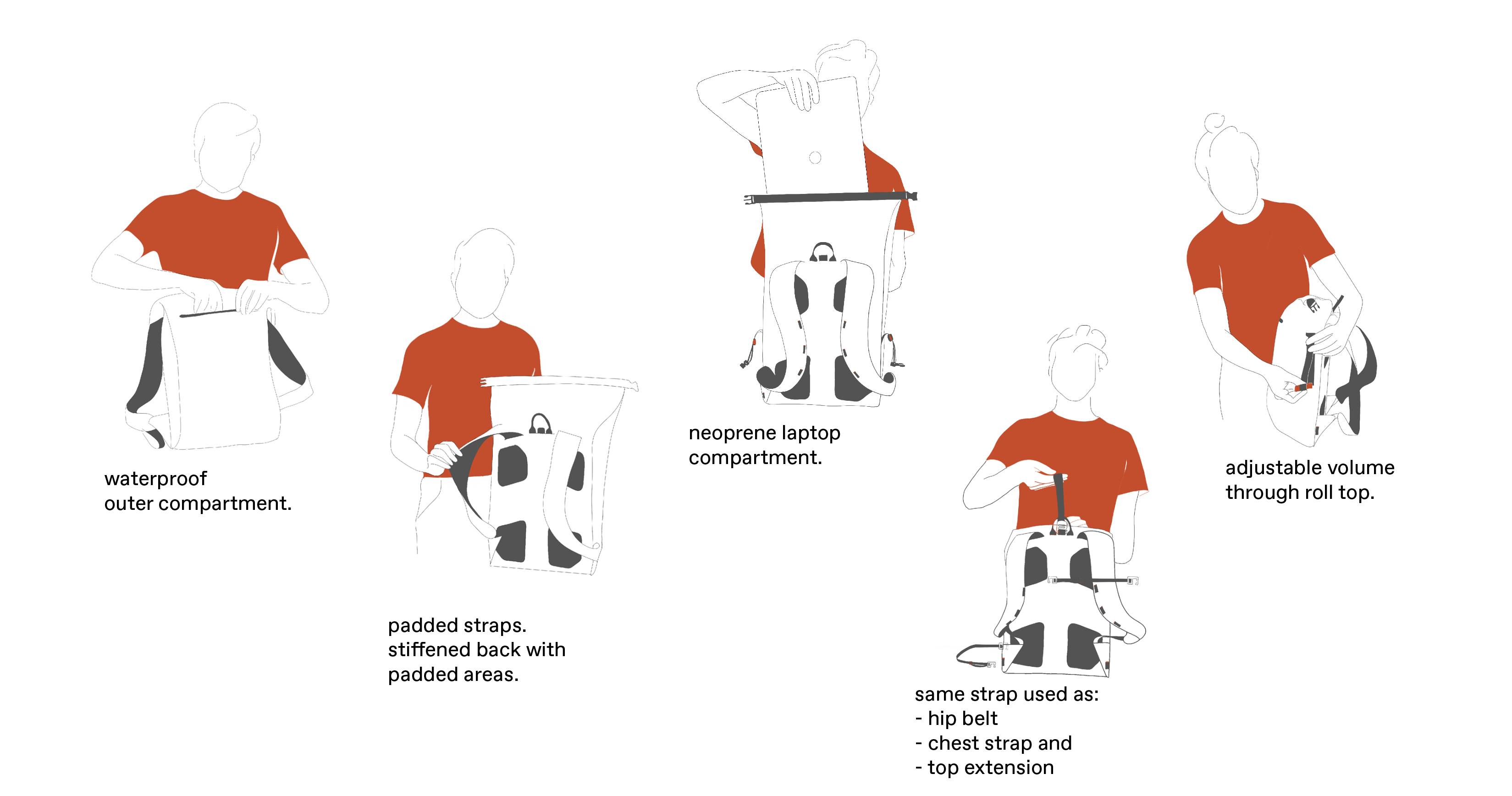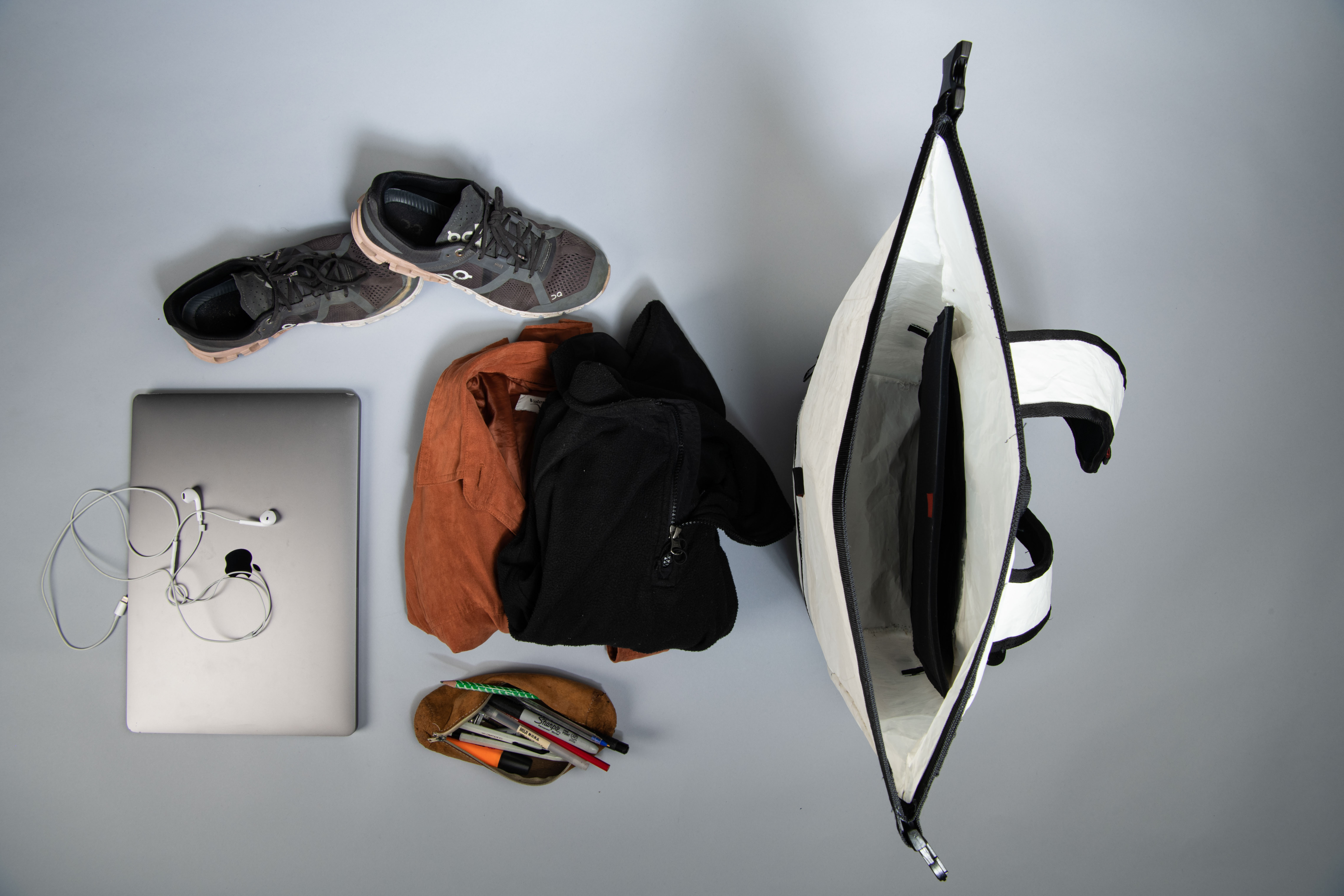 VOILE is a collection comprising three bags crafted from upcycled sailcloth. The collection encompasses an everyday backpack, a lightweight pack, and a shoulder bag. Old sails, in my perspective, represent a waste material that possesses quality too high to be discarded. Currently, there is no effective solution for recycling or reusing used sails, but VOILE seeks to change that. Sailcloth is known for its durability, waterproof properties, lightweight nature, and perhaps its most significant advantage: transparency.